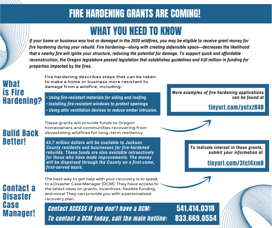 If your home or business was lost or damaged in a wildfire during 2020, you may be eligible to receive more than $6,000 in grant money for fire hardening of your home or business. Check out the links below for all the deets!